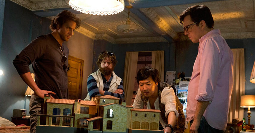 - В ролях: Брэдли Купер, Эд Хелмс, Зак Галифианакис, Джастин Барта, Кен Джонг, Джеми Чон, Мелисса Маккарти, Хизер Грэм, Джон Гудмен, Саша Баррези, Джиллиан Вигмэн, Джеффри Тэмбор, Майк Эппс