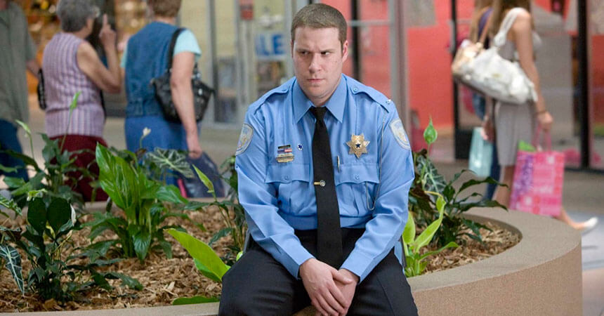 Отличная комедия с Сетом Роганом в главной роли, который исполнил роль главы службы охраны супермаркета Ронни. Фильм начинается с того, что некий уличный сумасшедший бегает по парковке супермаркета и показывает свой «обвес» прохожим, и как правило немедленно убегает. Глава охраны Ронни не может допустить, чтобы какой-то хер, бегал на вверенной ему территории и творил всякие бесчинства, поэтому он немедленно берется за расследование данного преступления.